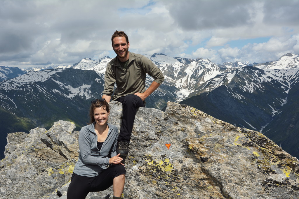 Giunti sulla vetta, prima ancora che il panorama mozzafiato, ad attirare la nostra attenzione è un piccolo cuoricino dipinto su una pietra, poco lontano dalla minuscola croce di vetta. Sollevato lo sguardo, ammiriamo le montagne circostanti, ancora ricche di contrasti con versanti innevati alternati a rocce e pendii verdeggianti.