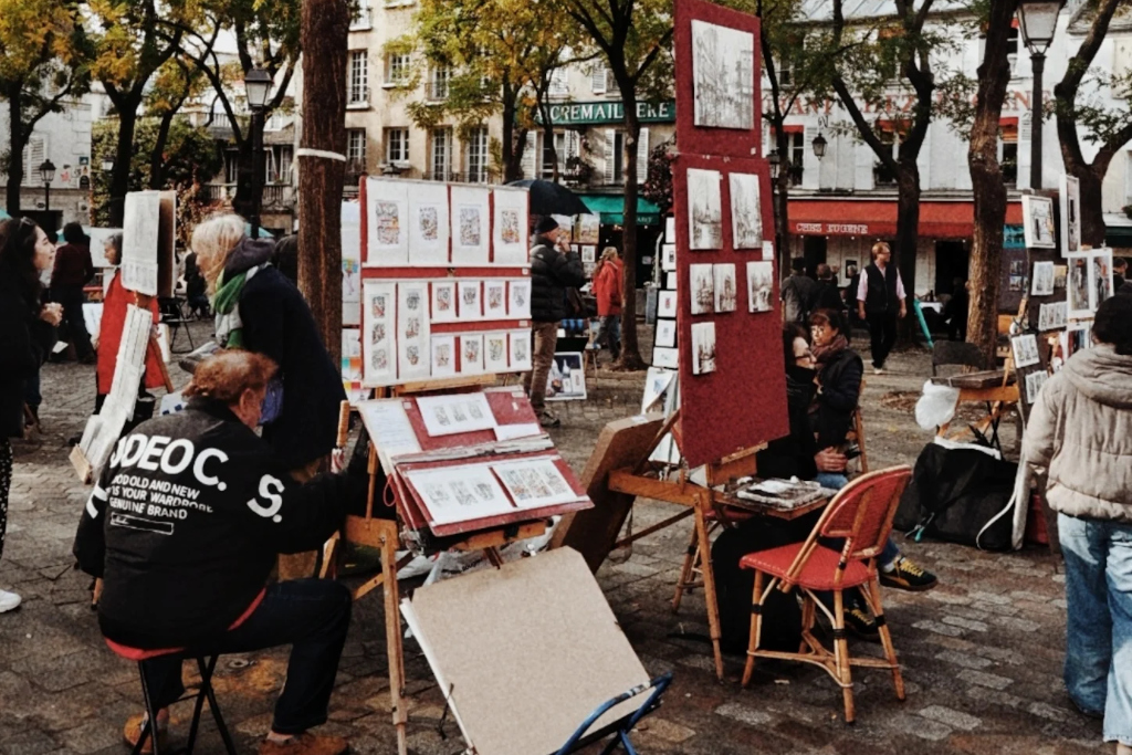 Artisti al lavoro nella Place du Tertre, sulla collina di Montmartre.